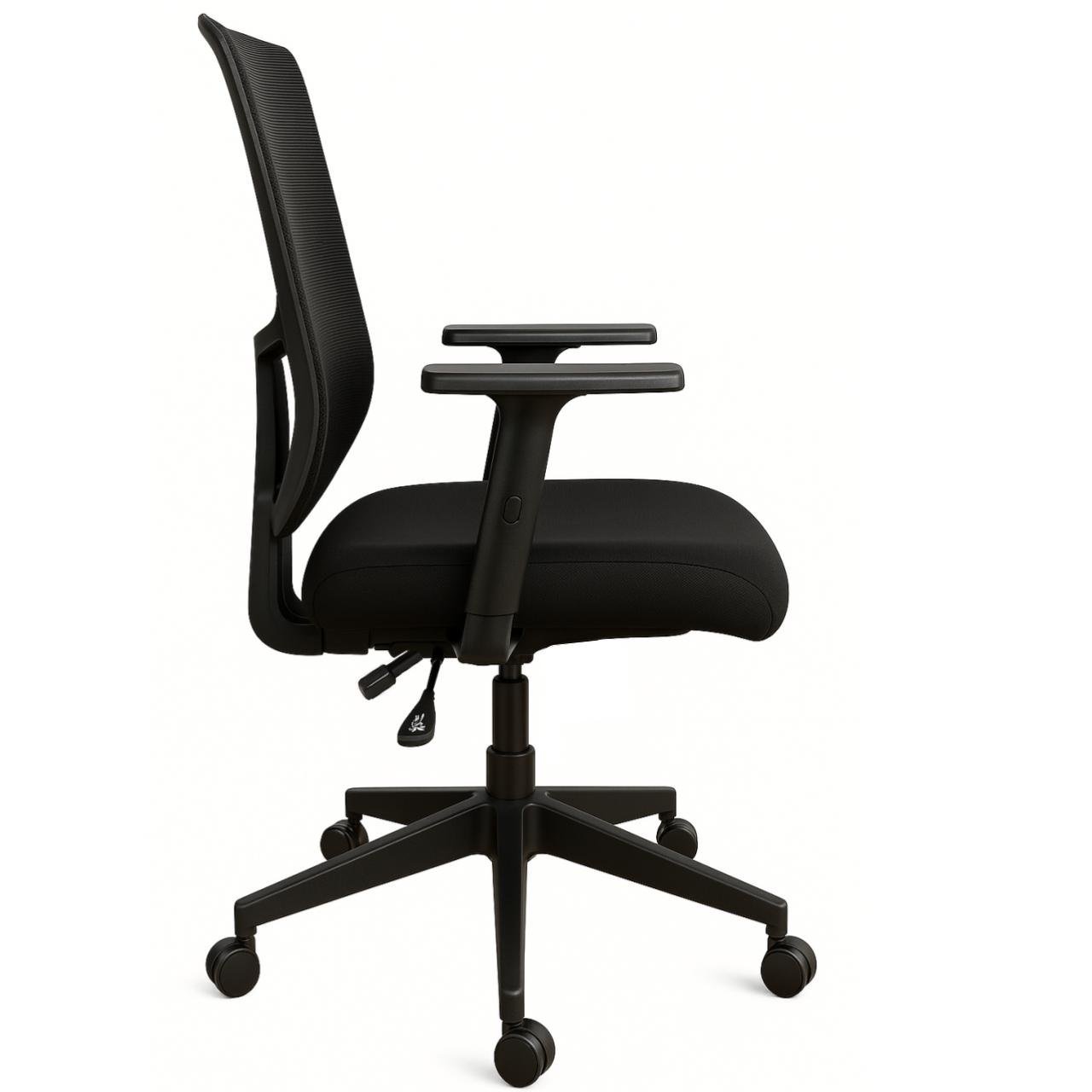 Cadeira ergonômica de uso profissional, ideal para ambientes corporativos, operacionais e escritórios em geral. Equipada com encosto em tela mesh, mecanismo Back System com ajuste de inclinação e altura, e dimensões adequadas para atender à Norma Regulamentadora NR 17 do Ministério do Trabalho.