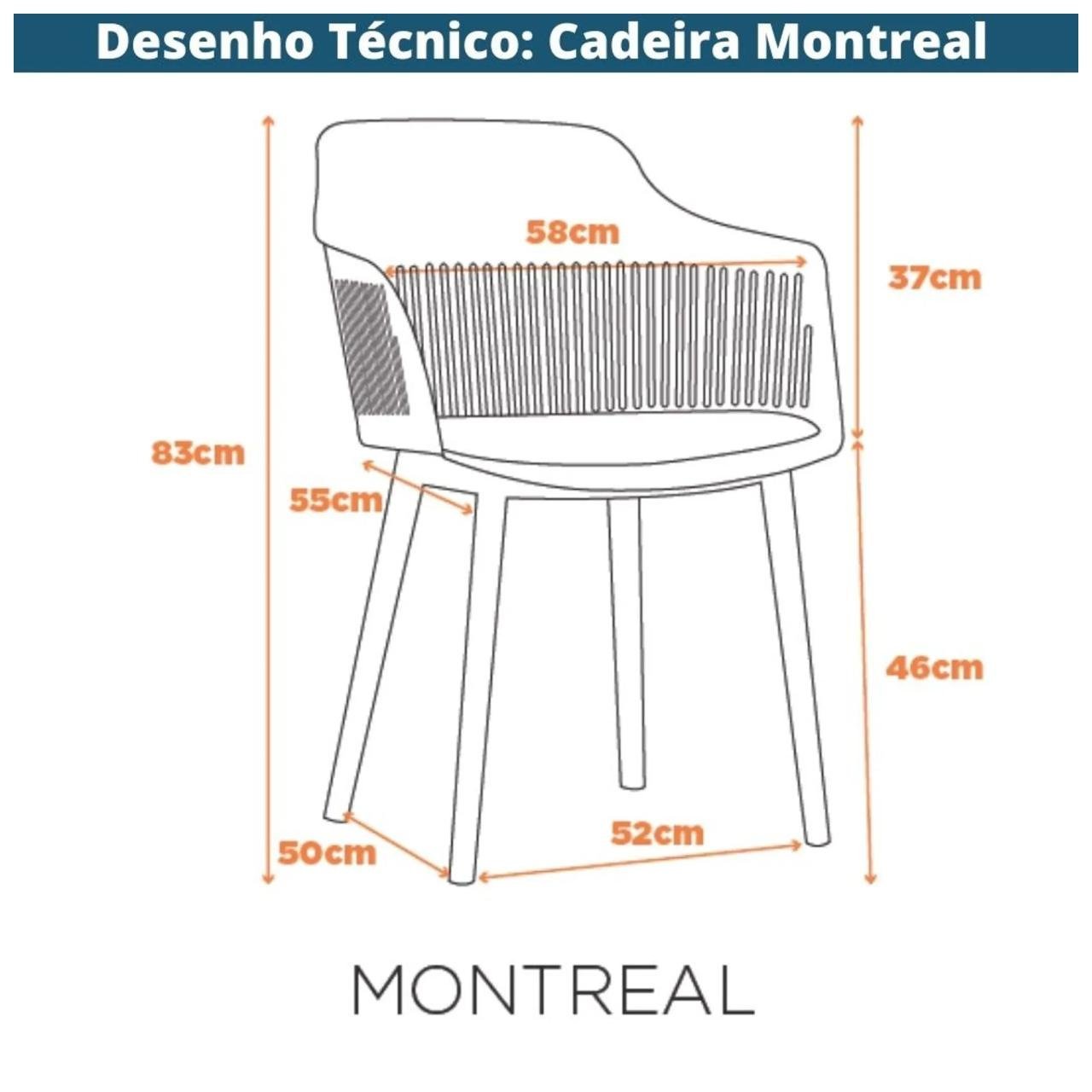 Quatro pés retos, também em polipropileno, com ponteiras de proteção que evitam riscos no piso.